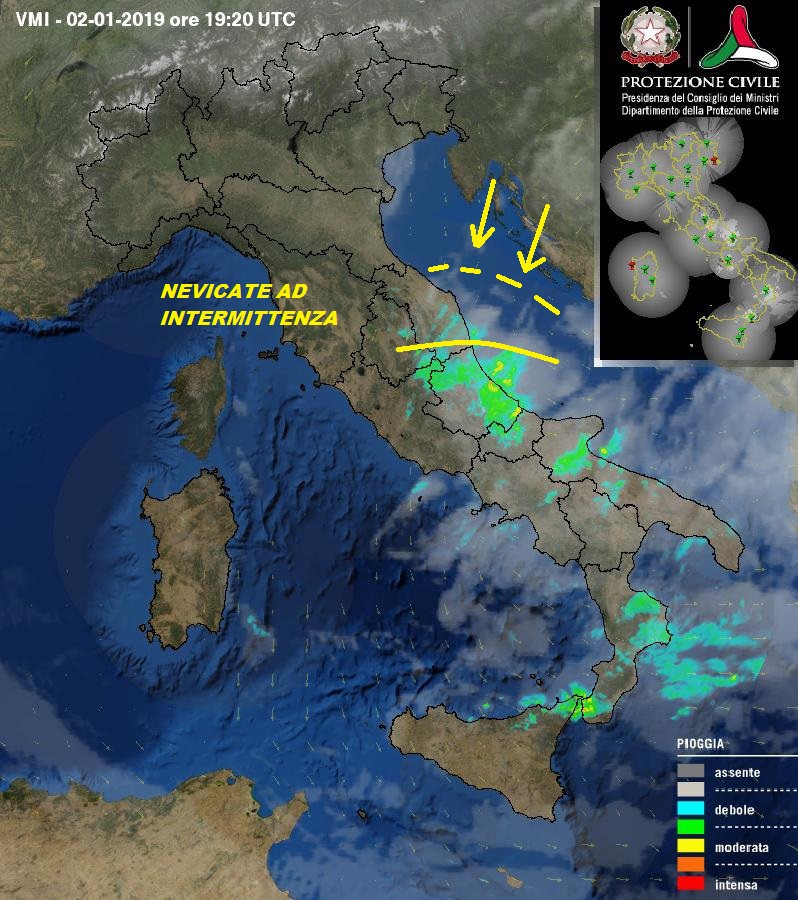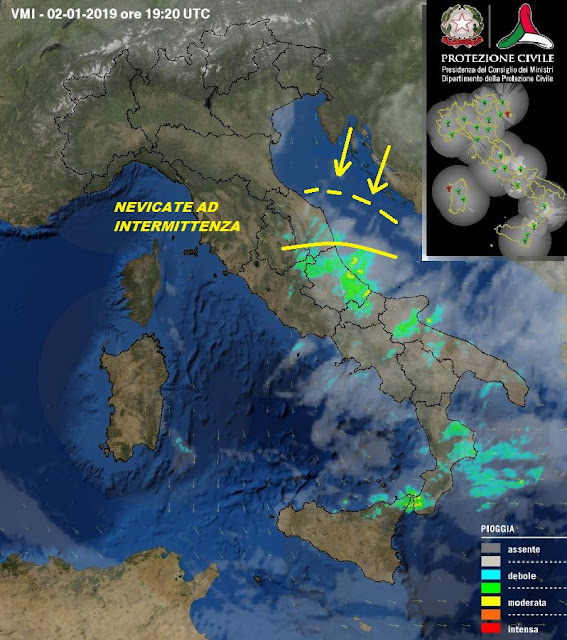 Sarà così tutta la notte ed anche al primo mattino, mentre, successivamente, assisteremo ad un'attenuazione dei fenomeni in attesa dell'impulso gelido più inteso, che dovrebbe giungere nelle prime ore di venerdì prossimo, quando le nevicate, dalla costa alla montagna, saranno più intense, favorendo gli accumuli più significativi.