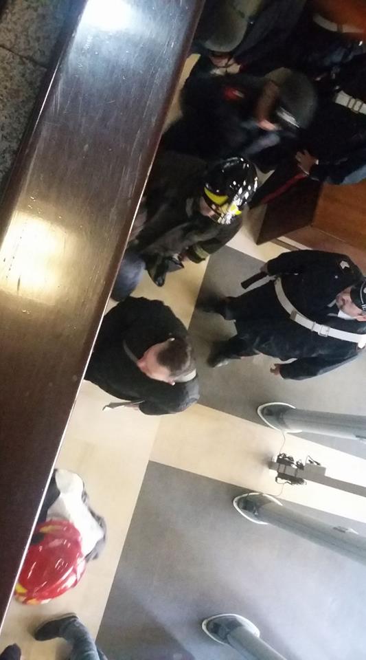 La foto è dell'avvocato Ilaria De Sanctis e racconta di un allarme bomba in corso al tribunale di Teramo.