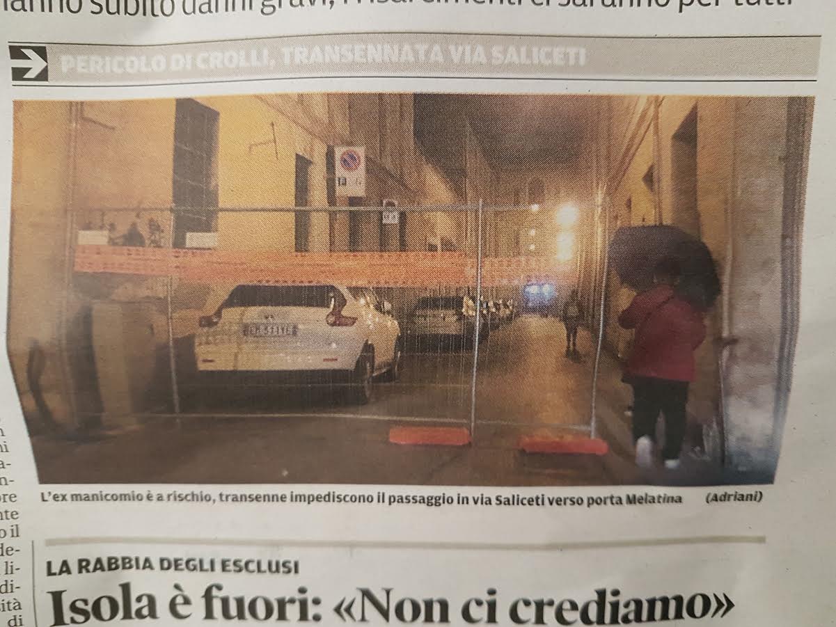 Nel frattempo Porta Melatina è stata transennata e rischia il collasso tutta la struttura dell'ex Manicomio.