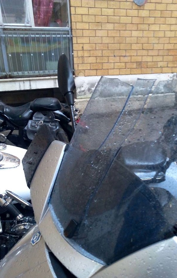 Mettete che per un evento atmosferico, un foglio di catrame a isolante del tetto, di circa 40 metri quadri per quasi duecento chili, sia precipitato rovinando su due moto parcheggiate.