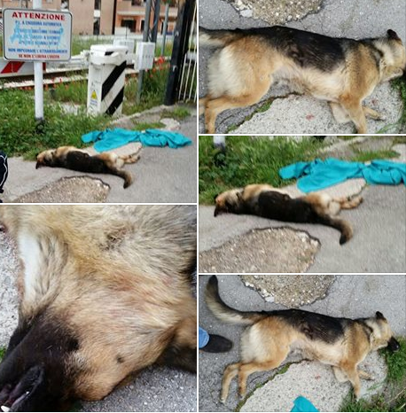 Mi allontano torno dal Veterinario. ...scopro Laika per avvolgerla con un telone...l'asfalto aveva portato via una buona parte del lato sinistro.e Laika è deceduta per trascinamento.....tutto il suo sangue era rimasto in quel Kilometro percorso senza ascoltare i suoi guaiti dolore.