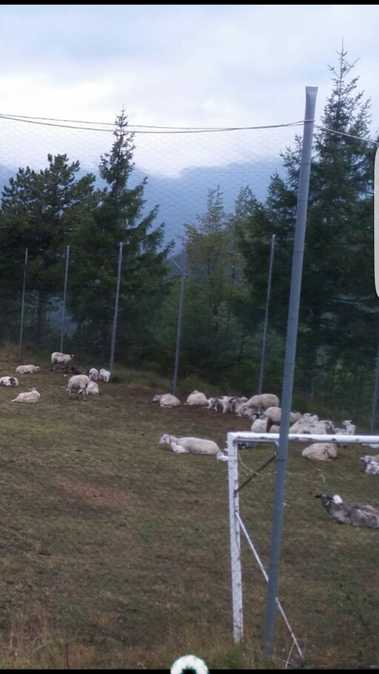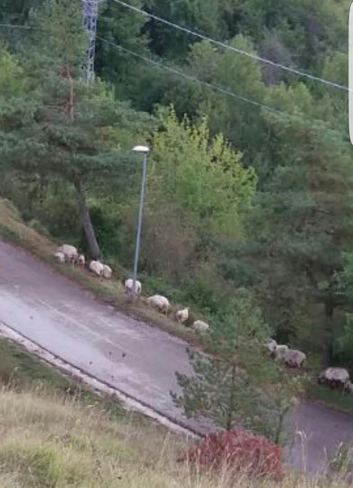 Nelle foto si vedono le pecore invadere anche il campo sportivo.