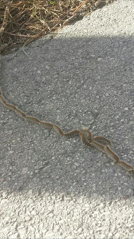 Oggi, a causa di un inverno mite, la processionaria processiona la strada tra Teramo e Toprricella.