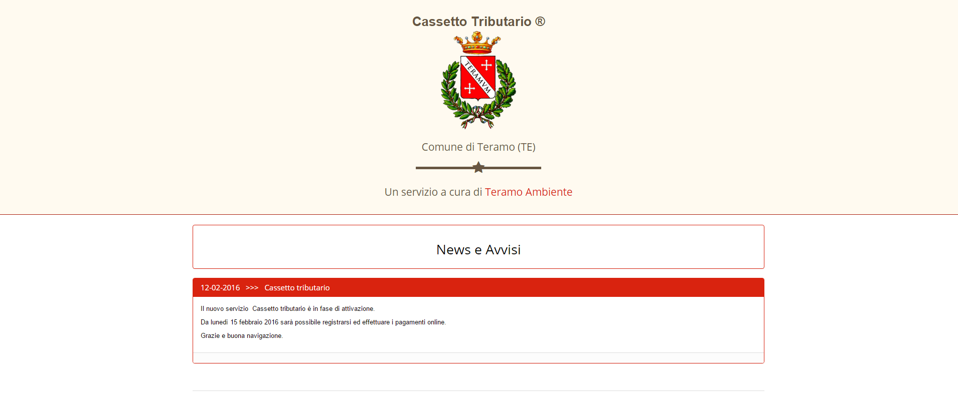 " Oggi ho ricevuto una lettera di avviso di pagamento della imposta TIA/TARI modello di pagamento unificato in tre esemplari,ossia tre rate.Dopo aver letto con attenzione un depliant giunto all'avviso di pagamento,dove per la rivoluzione per la gestione delle bollette online, si avvisa che registrandosi gratuitamente al sito del comune di teramo o della Teramo Ambiente potevo accedere al pagamento online.