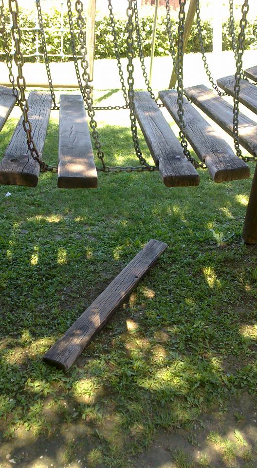 Claudia Bridget Brunetti dal suo profilo Facebook" ATTI DI VANDALISMO VISTO CON I MIEI PROPRI OCCHI al parchetto custodito del Parco Fluviale. Allego foto e spiegazione. Ero lí a giocare con due miei cuginetti, proprio lí dove c'é il castello con il ponte tibetano, occupato da 13/14enni. Il che é giá vietato perché é per bambini. É infatti strutturato per pesi leggeri. Uno di questi ragazzi saltava energicamente sul ponte in questione finché non ha rotto una tavola. L'ho prontamente richiamato ma si é messo a rimuginare. É arrivato un membro dell'Associazione Amici del Parco e a sua volta gli ha chiesto di scendere. Non lo ha fatto e cosí ho chiamato il 113 spiegando la situazione, allorché i 10 adolescenti si sono spostati al campo di bocce (proprio di fronte), rimanendo lí fino all'arrivo dei Vigili urbani, infatti si sono subito allontanati. Ai vigili io e l'altro signore abbiamo detto di andare da loro a parlarci per poi chiamare i loro genitori. Sapete cosa hanno fatto i vigili? Recintato il ponte tibetano e i ragazzi bellamente se ne sono andati. Io ho imprecato, i vigili impassibili alle mie parole. Io dico a voi come a loro se ci rendiamo conto. Che adulti diventeranno?!!? Siamo in un paese dove la legge non vale niente. Che esempi hanno i giovani. Giustamente, se i delinquenti pericolosi non pagano per i crimini commessi, cosa vuoi che dicano a dei giovani che rompono i giochi dei piú piccoli?