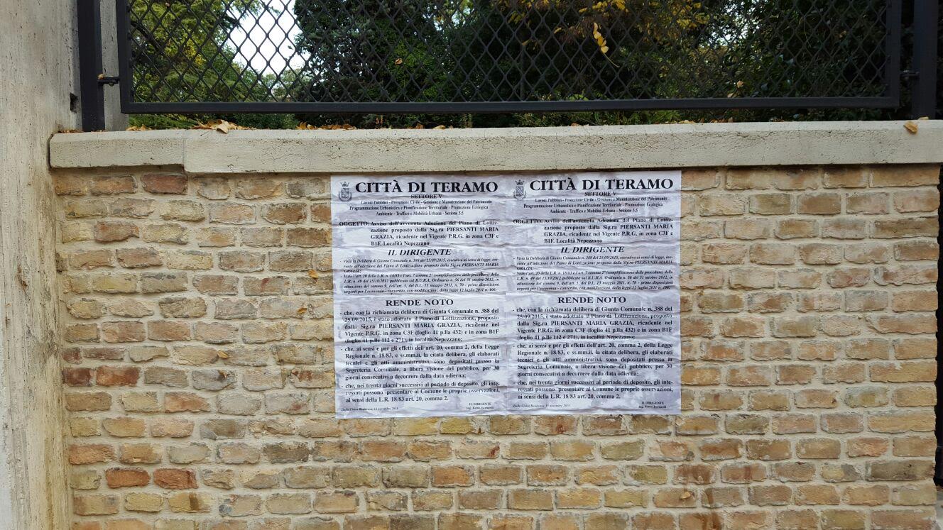 Quei Manifesti ( i soliti che per legge annunciano in questo caso l'adozione di un piano di lottizzazione) valgono un illecito morale.