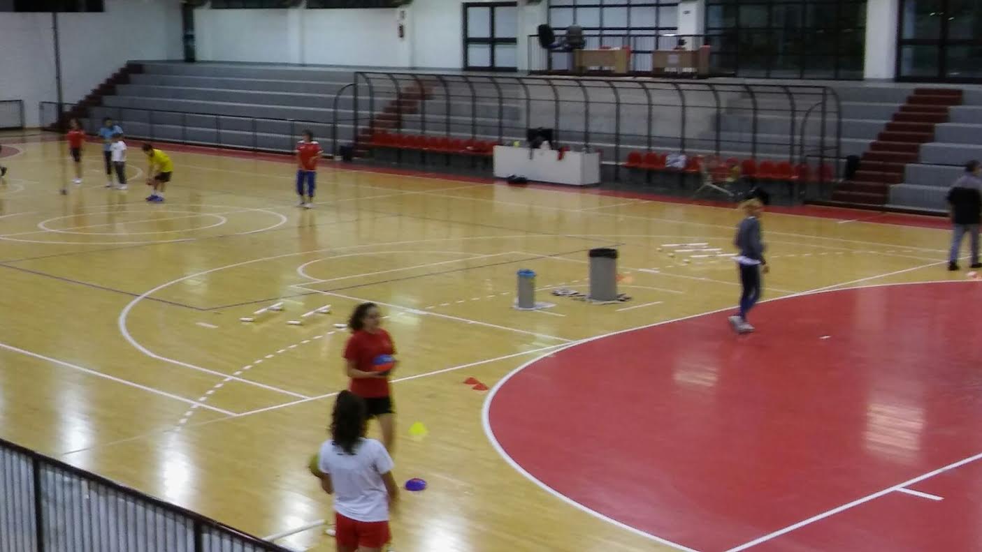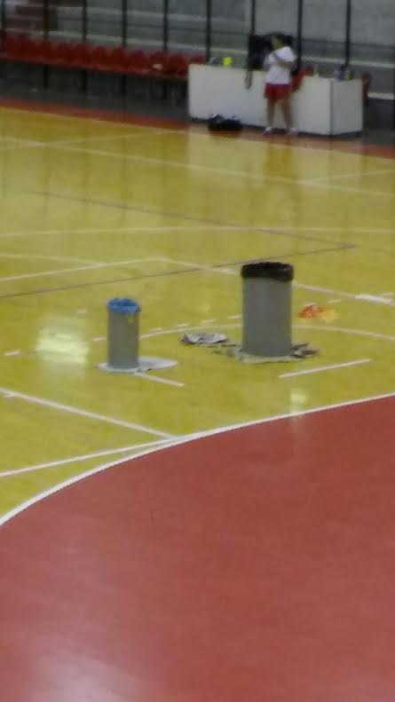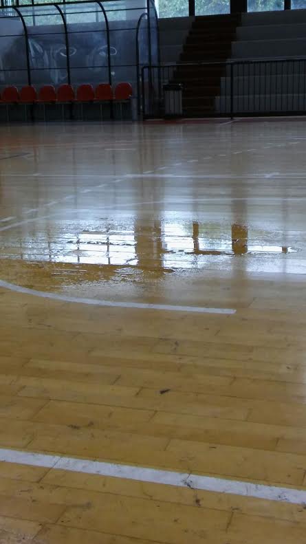 Ieri ragazzi, bambini, atlete, tutti a schivare l'acqua sul parquet del pala San Nicolò.