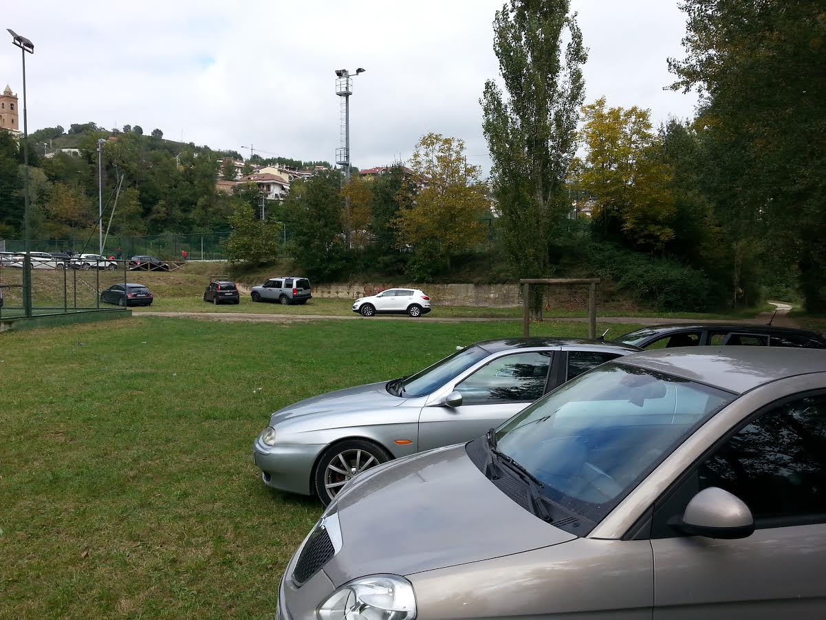 Auto ovunque in sosta tra gli alberi, nel percorso salute ad occupare gli attrezzi per lo sport e il tempo libero.