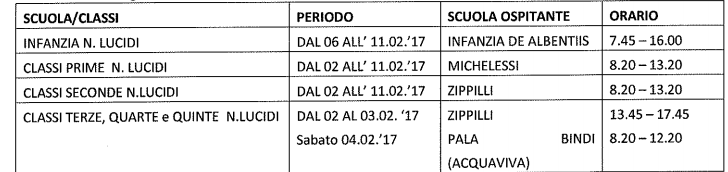 La scuola elementare Noè Lucidi riaprirà domani Giovedì 2 Febbraio con i seguenti turni...