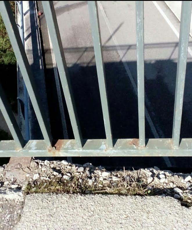 La ringhiera è troppo bassa da tempo e il supporto in cemento si sta pian piano, sgretolando.