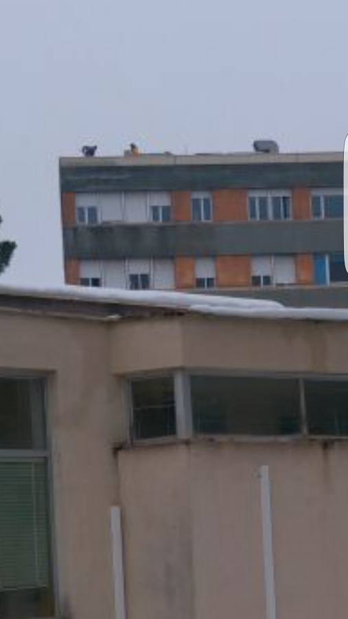 Mentre sui tetti dell'ospedale, senza nessuna protezione di legge, si spala la neve.