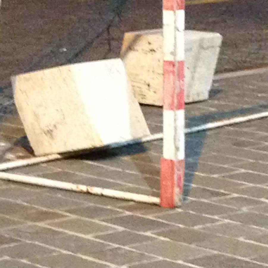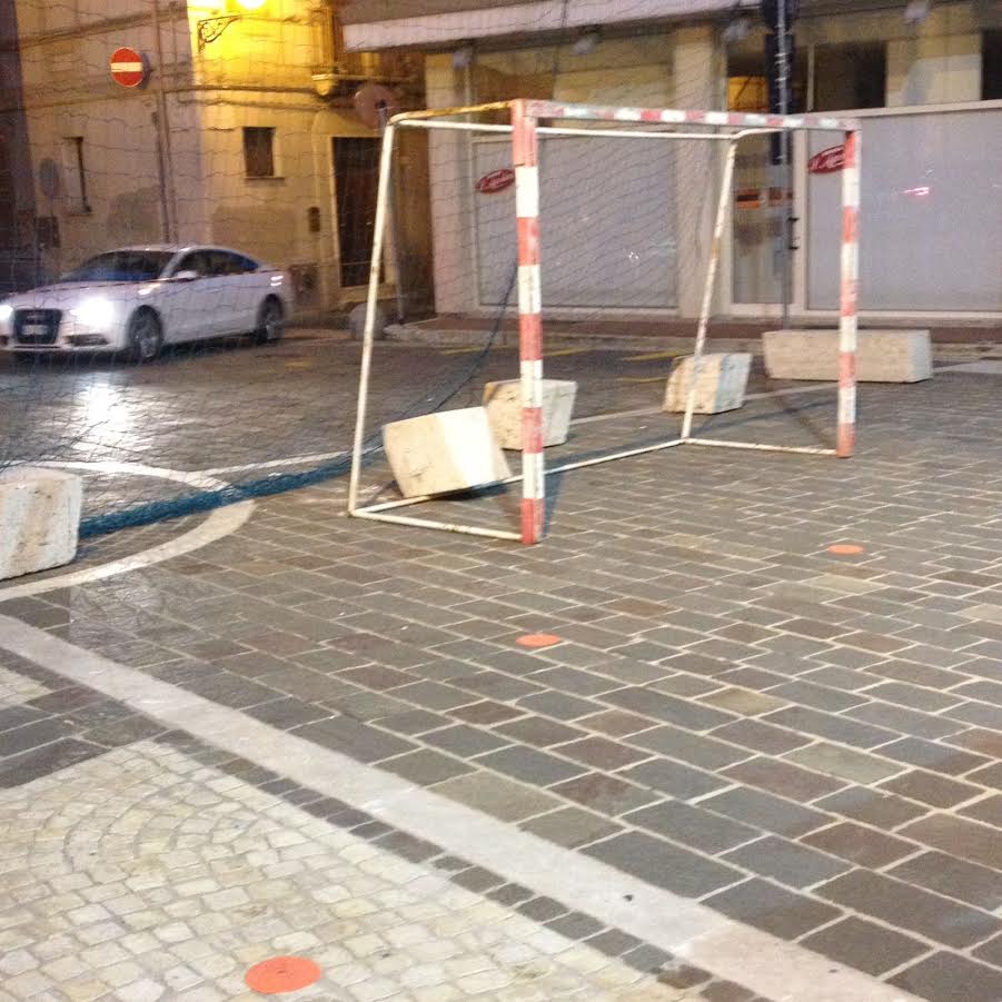 Le porte della Pallamano ( sport per eccellenza a Teramo e del presidente Canzio) e del calcio a 5 sono state addobbate con blocchi di cemento per bloccare le strutture.