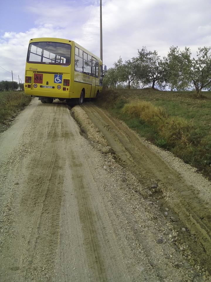 Giuseppina Colonna scrive " Tragedia sfiorata scuola bus Notaresco fuori strada con bambini dentro causa strada comunale abbandonata a se stessa...".