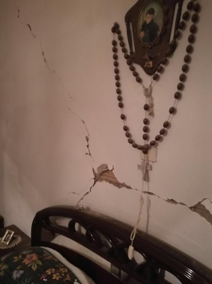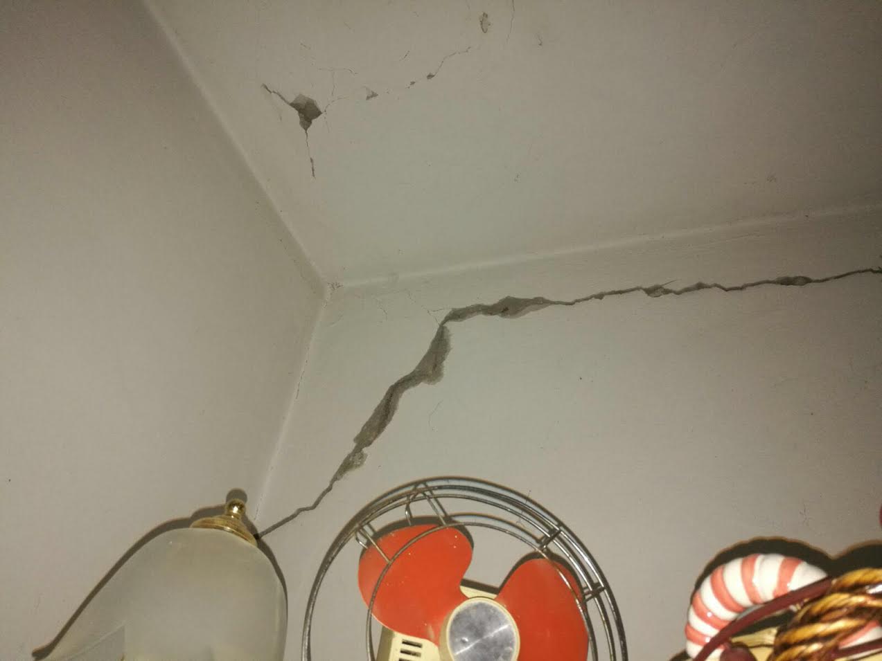 Richiesta di controllo per delle lesioni post scossa ai Vigili del Fuoco.