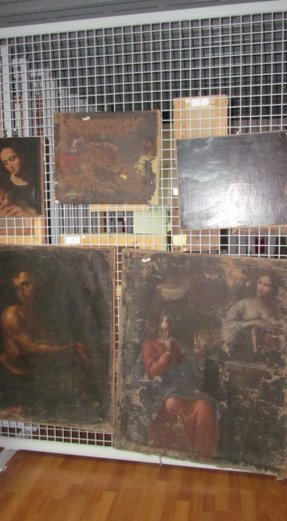 Molti dipinti non sono coperti dalla polvere e riportano ferite dovute probabilmente a un trasporto non idoneo.