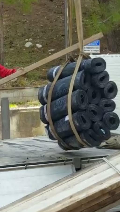 Copertura in Guaina che questa mattina è stata scaricata sul solaio con ben dodici rotoli.