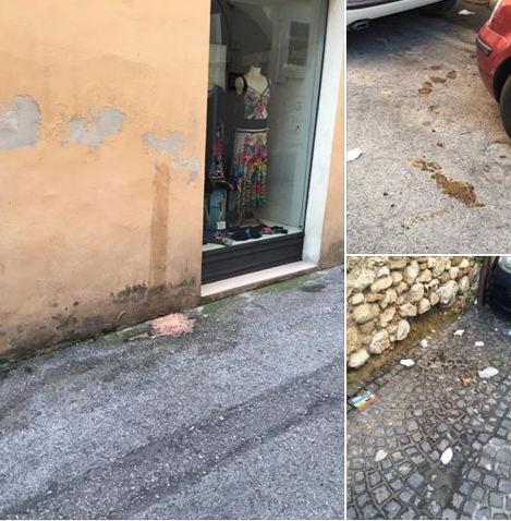 Giulia " Oggi mi sveglio presto...haimè la mia Roma...vado per prendere la macchina e questo è solo quello che vedo nel breve tragitto che mi porta a lei (ometto tutto il resto tra via Oberdan e la piazza)...allora mi soffermo a riflettere...che ben vengano gli aperitivi, che ben vengano i movimenti in città (e chi mi conosce sa che non sono una bigotta) ma vomiti, cacche umane, pipì negli anfratti delle vie, ecc..ecc...come fa la Team a levarli?? Quando si organizza l'evento, qualcuno organizza con un idrante a 20000 gradi la disinfestazione delle vie???? Scusate ma devo andare...anke xchè mi sta a venire il vomito!!!!