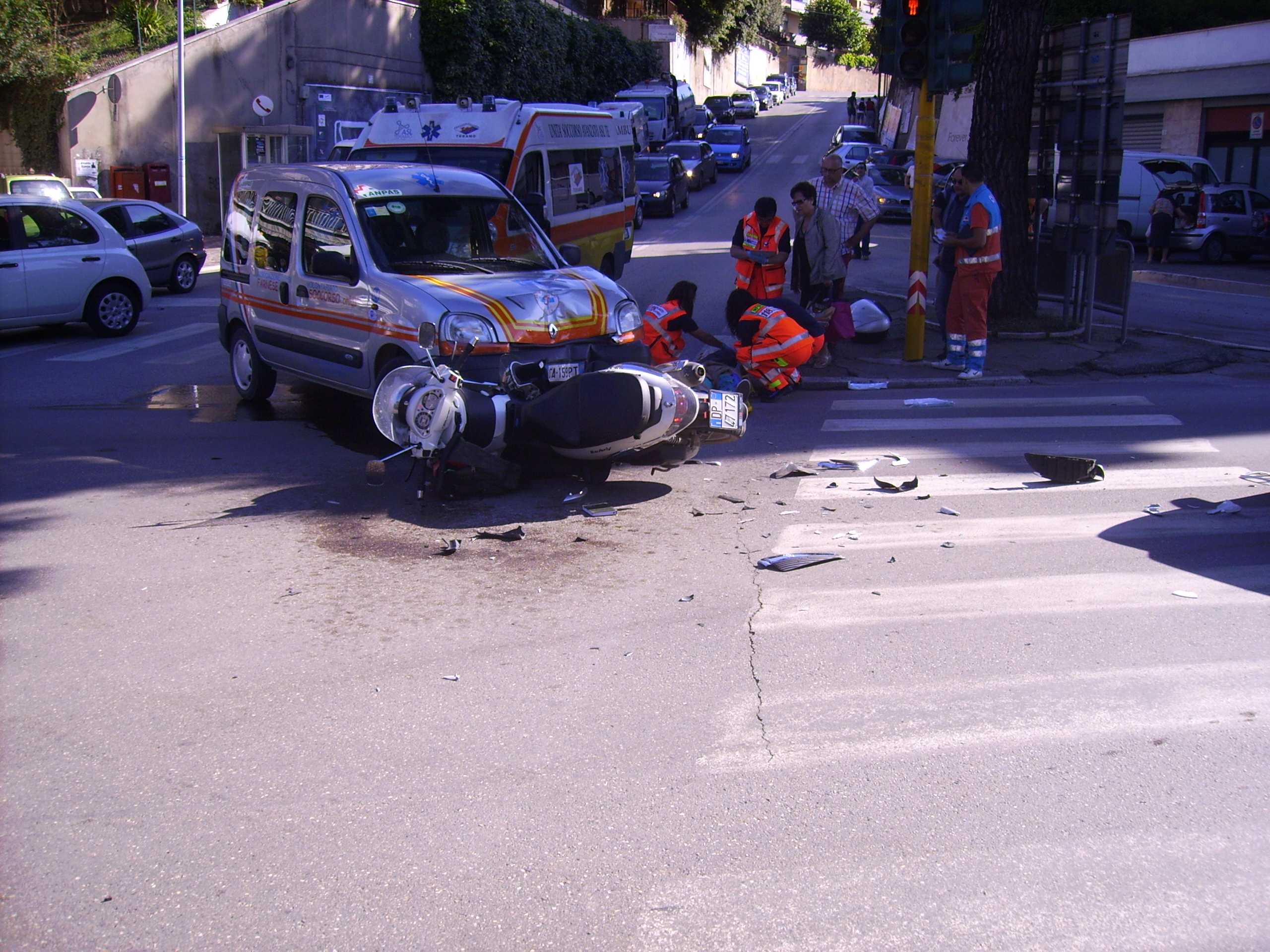 Il secondo incidente in pochi giorni, in un incrocio che sta diventando molto pericoloso. Ore 8,30 del mattino.Via San. Marino e via De Gasperi. Orario di scuola. Uno scooter condotto da un ragazzo ha frontalmente urtato un'autovettura del pronto soccorso dell' Anpas. Il ragazzo prontamente soccorso ha riportato la rottura dei legamenti e una frattura scomposta della tibia. Molto probabilmente verrà operato nella tarda serata. Sul posto è intervenuta una pattuglia della polizia municipale di Teramo per regolare il traffico e i curiosi.
