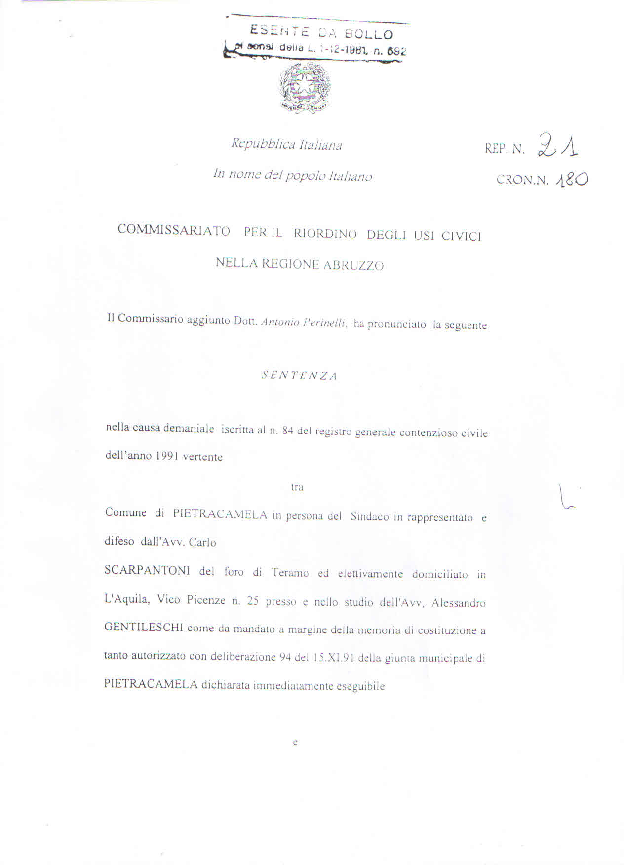 Chi vorrà visionare l'intera sentenza potrà richiederla all'indirizzo mail falconigiancarlo@gmail.com