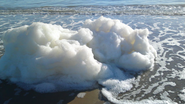 Diversi turisti e noti atleti (f.to Valerio Di Francesco), hanno spedito in redazione le foto di una spiaggiata di schiuma bianca.