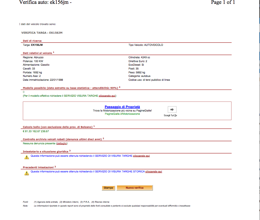 E' un veicolo EcoDiesel, ha una cilindrata di 4249 cc e la sua targa è EK156JM.