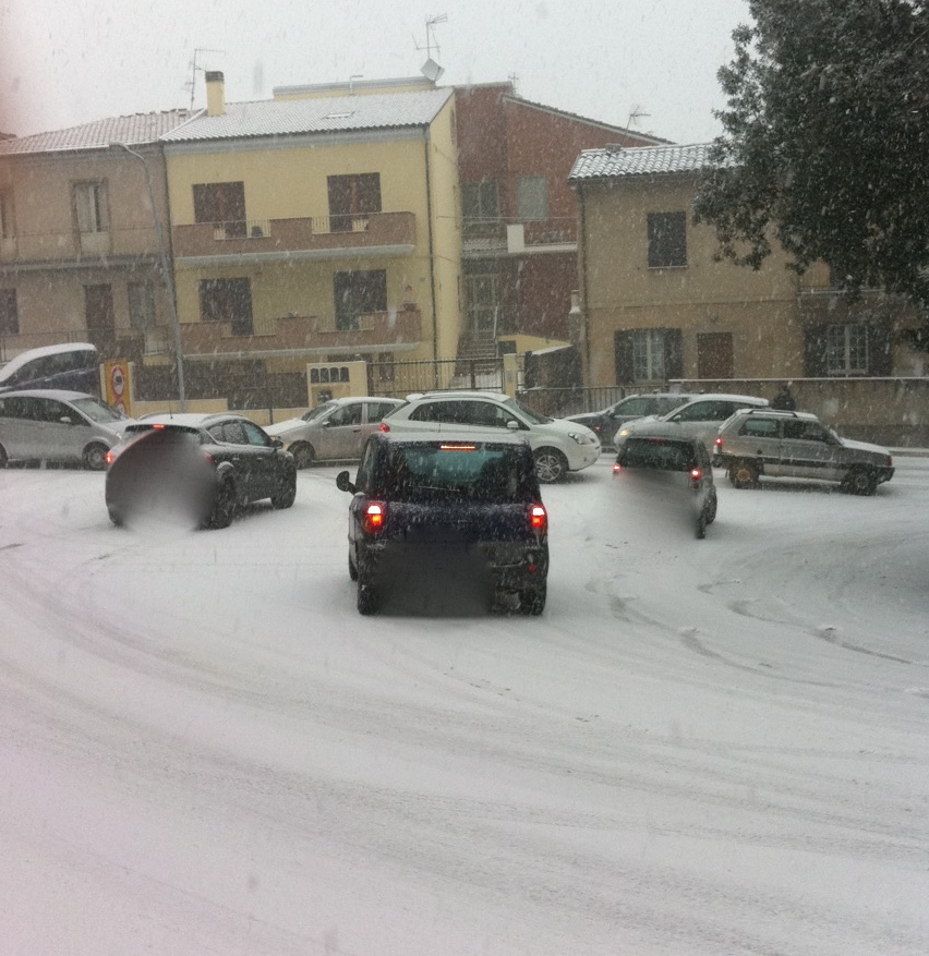 Nelle polemiche di ogni anno sul nostro misero (di risorse) piano neve, c'è da aggiungere che noi automobilisti affrontiamo l'inverno senza gomme termiche, catene a bordo e con la paura della guida su ghiaccio. L'altra faccia della crisi. Che succede a Teramo? Villa Mosca, Colleminuccio, Colleatterato Alto e Basso, Colleparco, discese e salite pericolose, presentano strade al limite della praticabilità. Chilometri di code e sensazioni di abbandono. Il centralino della Polizia Municipale, dei Vigili del Fuoco, sono stati subissati di chiamate e di richieste di informazioni. Domani il sito meteo.it prevede forti ghiacciate ma le scuole rimarranno aperte.