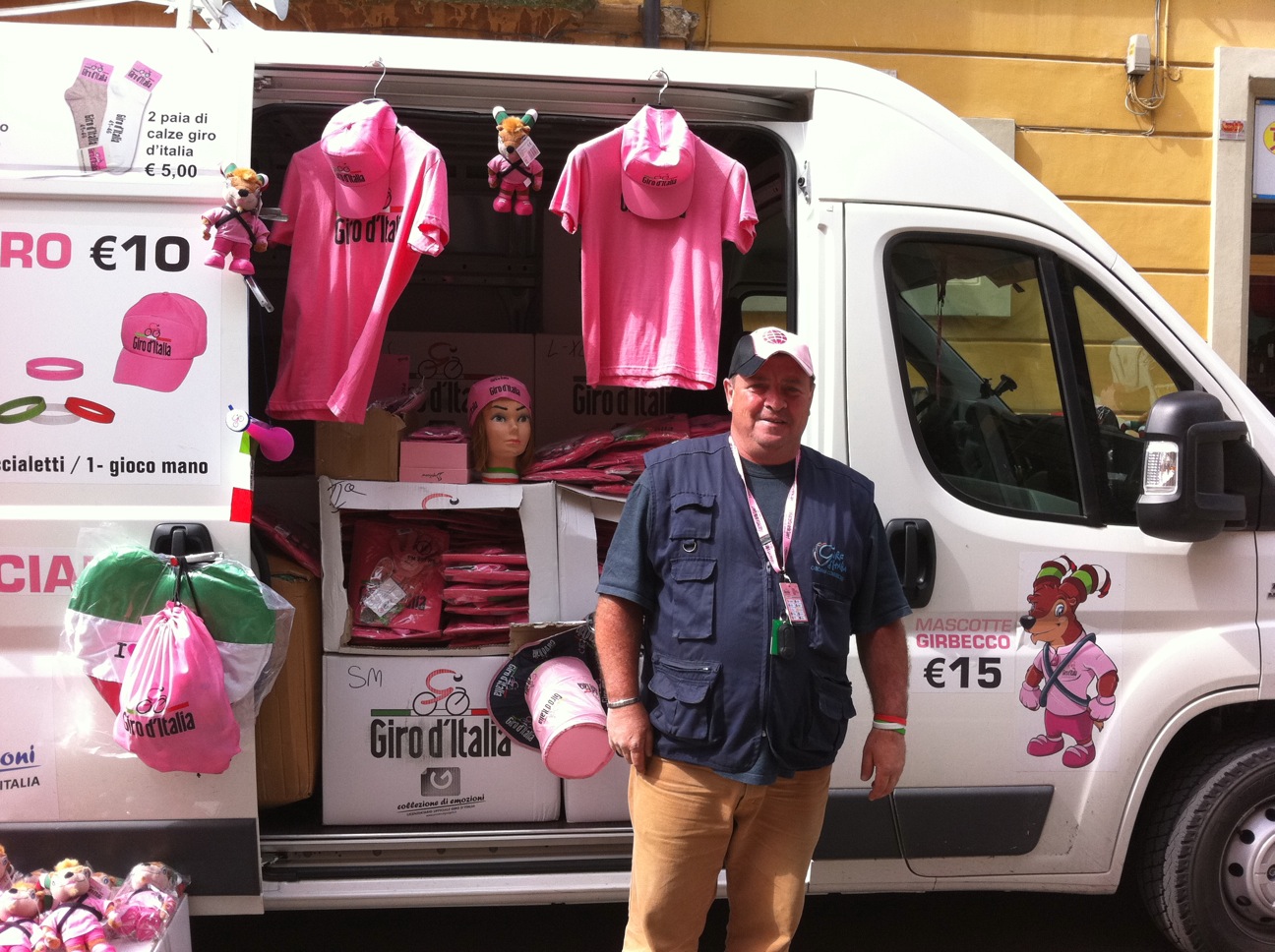 Decima tappa del Giro d'Italia, Termoli-Teramo, vince Marc Cavendish su Ventoso e Petacchi. Un pensiero sportivo per Ivan Basso caduto oggi sull'Etna. Le altre storie iniziano dalle prime ore del mattino con l'arrivo della carovana del giro. Gli ambulanti con le magliette, i peluche, le manine, i kit del Giro, ci raccontano piccoli e grandi aneddoti. Hanno dormito a Giulianova. Hanno dormito bene, benissimo, Hotel Tiziana. "Sono stati gentili e onesti-ci raccontano- poi il loro viaggio dalla Sicilia, la multa per mancata emissione di uno scontrino fiscale (500 euro) a Orvieto, gli amori tra un' addetta alle vendite e un corridore". Un amore all'inizio fatto di sguardi e attese, "I ciclisti-ci confida Luca un operatore-media- sono troppo stanchi la sera, dovranno aspettare il giorno di riposo"-sorride. "Un bacio però rimane sempre possibile. in questo caso non posso dirvi altro. Sono semplicemente belli e fanno tenerezza".Diciotto anni di passione, di gadgets e di vita con i corridori. Una piccola curiosità, ma il vostro rapporto con i ciclisti? " Li salutiamo fino all'ultima tappa, poi, diventano i nostri primi clienti. Comprano alla fine di tutto per riportare a casa un ricordo, per la ragazza, i genitori e i figli. Siamo tutti innamorati e tifosi del tour all'italiana". Al termine della tappa avevo in borsa una felpa del giro d'Italia, due peluche, un Kit del giro, una bandana...l'economia gira e rigira. Il ricordo più bello nel taschino della giacca: l'autografo del cannibale per antonomasia, Eddy Merckx. Un plauso finale, con sorpresa, con orgoglio all'Amministrazione Brucchi, all'Ass. Campana e all'Ass. Di Stefano...Teramo è telegenica.