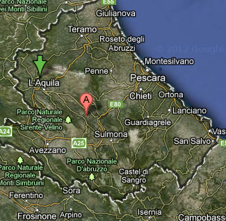 Arischia, piccola frazione del capoluogo d'Abruzzo. L'epicentro.