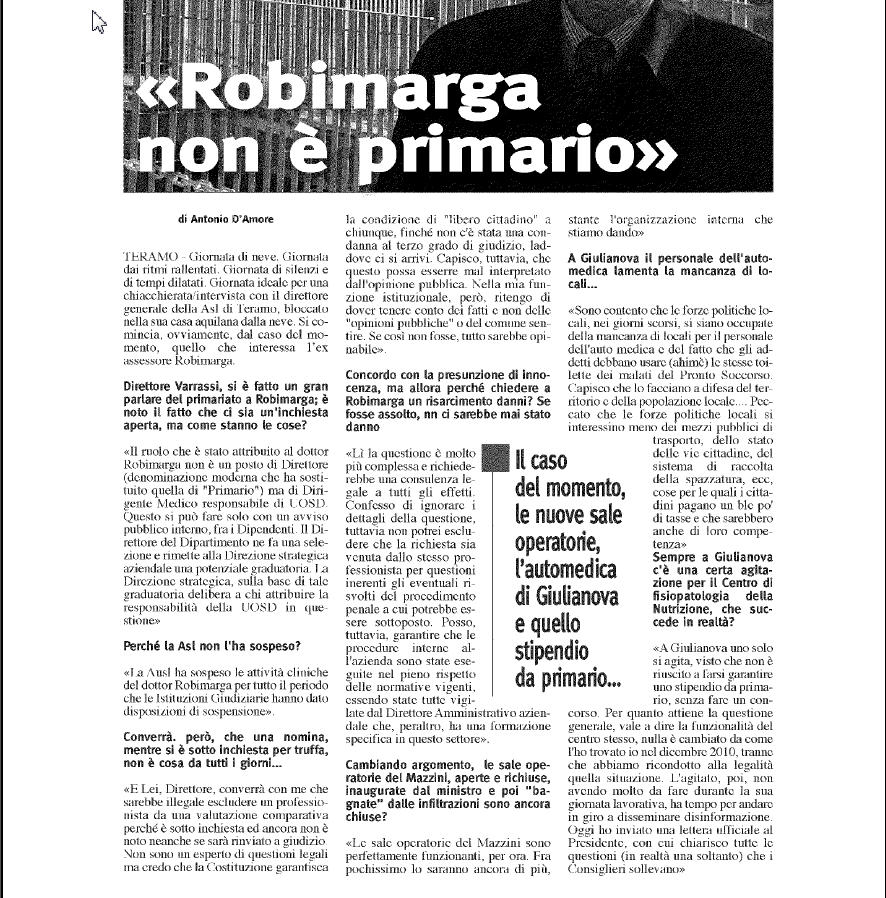 Una sentenza di primo grado ( tribunale Ancona) che sarà sicuramente appellata dall'ex Manager dell'Asl di Teramo, Giustino Varrassi.