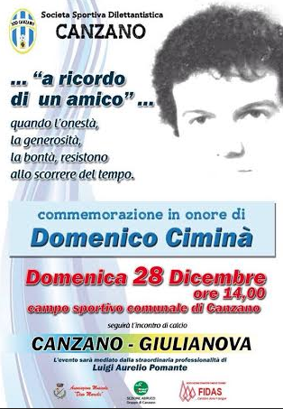 A Canzano però, l’amarezza è stata vinta dal buon cuore della Società Sportiva, che ha deciso ugualmente di organizzare un evento il 28 Dicembre, dedicato alla memoria di Domenico Ciminà.