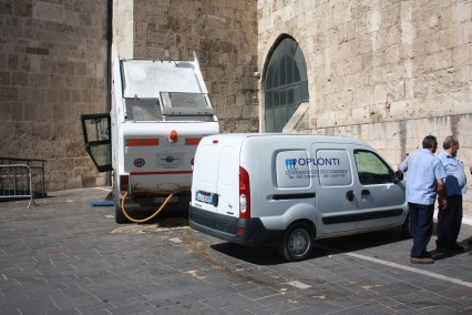 Non abbiamo parlato dei mezzi del Porta a Porta, che sono ritenuti fuori norma per il caricamento posteriore e dall'alto e tutto ciò che abbiamo, inutilmente, trattato, in passati articoli. Vi ricordate? Era il mese di Settembre 2011 quando il Sindaco Brucchi prometteva l'asfalto al piazzale di Carapollo.