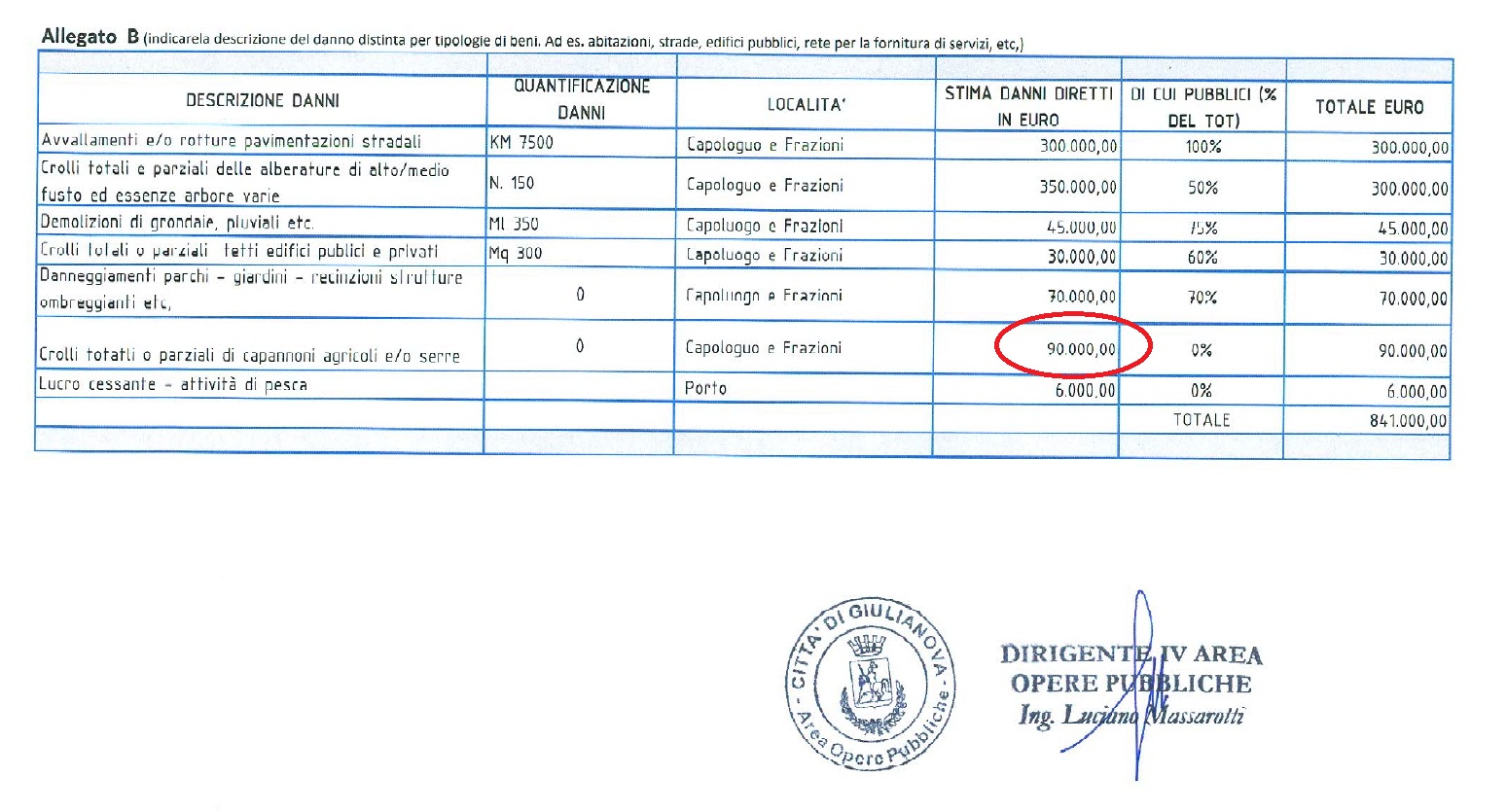 Con quella delibera la Giunta approvava due schede di cui una, la B, contenente una prima quantificazione dei danni subiti, sia da soggetti pubblici sia da privati, a seguito delle abbondanti nevicate verificatesi nel febbraio del 2012.