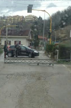 Il passaggio a livello di Villa Pavone è sorvegliato da un'auto dei carabinieri.