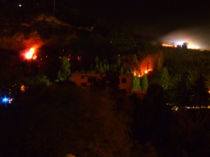 Teramo è in mano al maniaco seriale. Il pironame è tra di noi. Questa è la realtà. Solo verso mezzanotte di ieri sera i Vigili del Fuoco sono riusciti, con la solita professionalità e il solito coraggio, a domare fiamme alte e molto pericolose. La Collina di Colleparco fino al confine con la statale, segnato dal brullo colore delle sterpaglie, ha rischiato di bruciare e di coinvolgere la nutrita demografia cittadina. Case e persone. Paura. (Le foto sono di Alessandra Morrone e Antonio Mucciconi.) Chi è il Piromane? Era con noi a godersi uno spettacolo in prima visione? Ha dato l'allarme? Ha chiamato lui per primo i soccorsi? Era lì a tranquillizzare le persone in strada? A condannare se stesso per un atto così vigliacco? Quando ha goduto nel vederci spaventati e soli? Teramo deve reagire. Dobbiamo diventare sentinelle e appuntare ogni minimo sospetto verso motorini fermi sul ciglio della strada. Automobili parcheggiate in zone boschive. Cercare di osservare con la massima attenzione. Ci sono altre zone di Teramo, che in questi due anni di attacchi non sono state mai colpite. Facciamo attenzione perchè le cose potrebbero degenerare e non sempre, il tempo dei soccorsi, potrebbe essere così veloce. Aiutiamo le autorità ad arrestarlo, perchè il gioco si sta facendo ogni ora sempre più pericoloso.