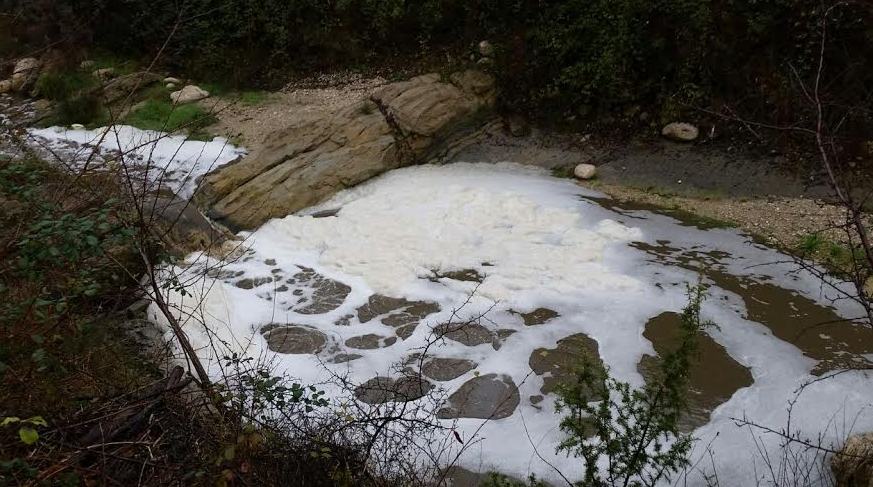 Il torrente Vezzola all'altezza del Palazzetto di Scapriano a monte e a valle...i soliti schiumogeni maleodoranti.