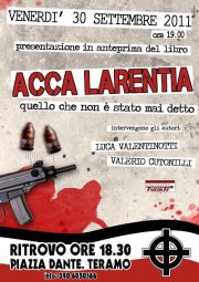 Venerdì 30 settembre Hotel Abruzzi Viale Mazzini n.18 presentazione del libro "ACCA LARENTIA quello che non è stato mai detto" di LUCA VALENTINOTTI e VALERIO CUTONILLI