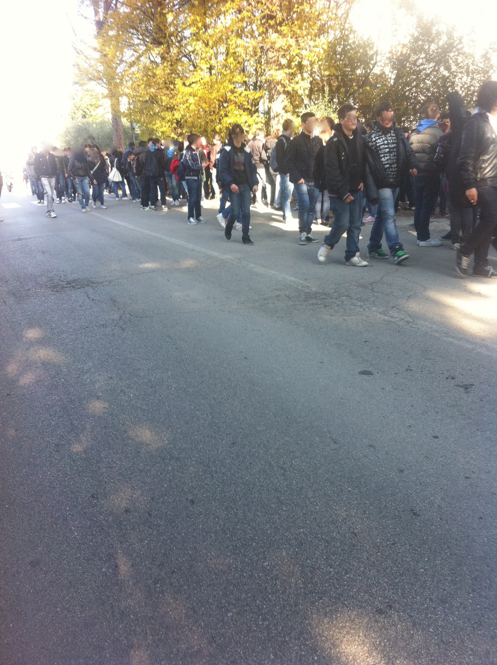 Una sporcizia da letamaio. Le automobili sorpassano velocemente i pullman senza badare alla minime regole del codice della strada. I ragazzi si schiacciano dentro quelle corse stracolme, per un agognato riparo. Venite a vederli durante una tipica giornata invernale. Pioggia e vento.