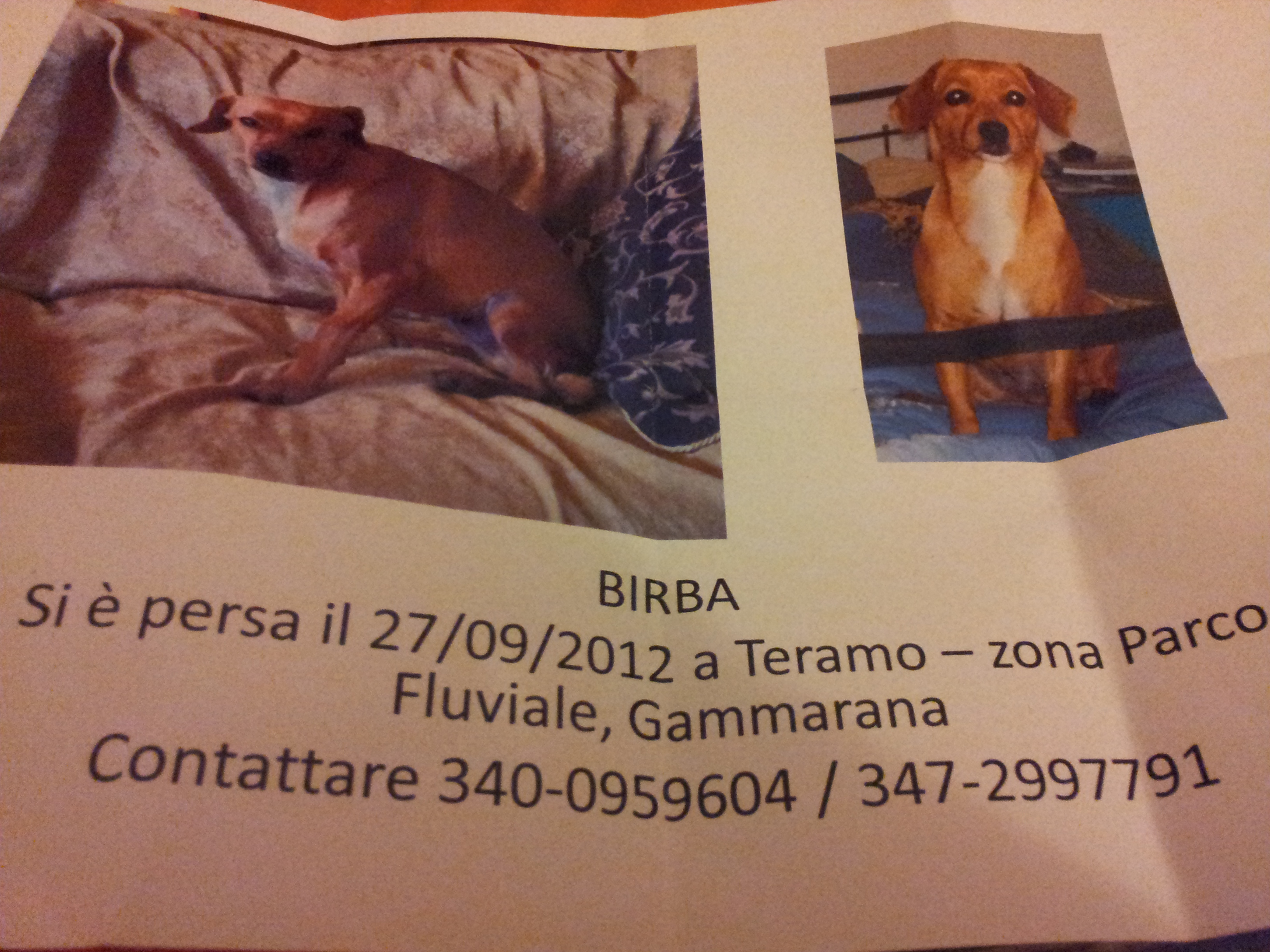 Ti capita di vedere amici disperati girare per Teramo a cercare la loro adorata cagnetta Birba. Tre anni e mezzo e una storia di cane fantasia.