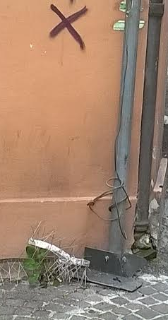 -Via Porta Carrese (vicino ex-Monopoli di Stato basetta semisepolta da escrementi di piccione)