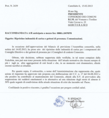Vi ricordate il suo documento in cui chiese la riduzione del 30% degli emolumenti?