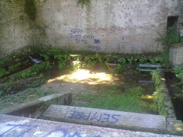 C'è un proverbio che dice che "gli autentici teramani hanno bevuto l'acqua della Fonte della Noce per la purezza dell'essere teramano." In realtà Teramo continua a non avere memoria e storia. La nostra amica di vecchia, scusa Mary, giovane data, Marinella Galletti, ci segnala una visione d'insieme sconfortante e avvilente. Vi consiglio di leggere http://pensieriteramani.splinder.com/post/21054262/teramo-la-fonte-dell…... scoprirete la bellezza di questo luogo. L'ignoranza ha colpito uno dei nostri monumenti più importanti. Se l'idiota che ha dedicato una frase d'amore alla sua Sara, avesse conosciuto, esatto conoscenza, il valore storico di questo luogo immerso nei ricordi, forse avrebbe trovato un altro modo per prosare. La cultura insegna l'educazione civica. Ti entra dentro perchè acquisisci sensibilità e curiosità. Senso di protezione e cura dei particolari. Spirito di Osservazione. Ora ripuliamo la Fonte della Noce perchè oltre a quelle scritte, la struttura è in completo stato di abbandono, ma questa è la solita storia.