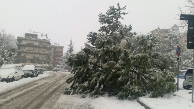 Neve primaverile, pesante ma pur sempre neve primaverile ha fatto cadere diversi alberi con pericolo per le persone e le automobili.