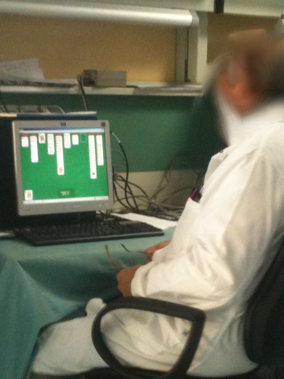 Che bello è già arrivato Natale. Alleniamoci con le carte. Quante belle partite a poker. Che meraviglia. Che spettacolo. Io punto forte. Io so bluffare. Io so rilanciare. Io so sognare. Io mi sono allenato tutto l'anno. Dove? A Lavoro. Ospedale Civile di Teramo. I malati in giro come schegge impazzite tra i reparti. Negli stessi reparti, alcuni monitor dei personal computer sono sintonizzati su pratiche importantissime. "Signora un attimo stiamo lavorando", recita la litania del medico. Nel frattempo esistono i maligni, che con un fare silenzioso e furbo, azionano i clik, clik dei telefoni di ultima generazione, piccoli e invisibili, che immortalano la nuda e cruda verità. Il solitario. Non è una masturbazione onanistica, ma la compagnia preferita del dottore indaffarato. Uno scandalo, quadro e specchio di un riflesso degradante. Sicuramente lo zelante medico era in una meritata pausa caffè. Ci crediamo tutti. Sono sicuramente in pochi. Hanno ore e ore di disagio. I Pazienti? Ora non esagerate. Mi sembra evidente che si tratti di una sfortunata coincidenza. Posso almeno provare il sentimento dell'imbarazzo. Sono libero di protestare a nome di molti e dei pochi silenziosi? Mi vergogno per la fila con mia madre. Mi vergogno per la mia fila. La nostra malattia. Il mancato rispetto. Grazie.