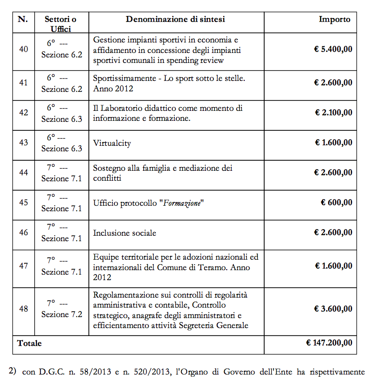 La super cazzola continua in questo modo per tutti i settori. In pratica paghiamo ai dipendenti comunali oltre allo stipendio, i premi per i progetti che dovrebbero fare con lo stesso stipendio.