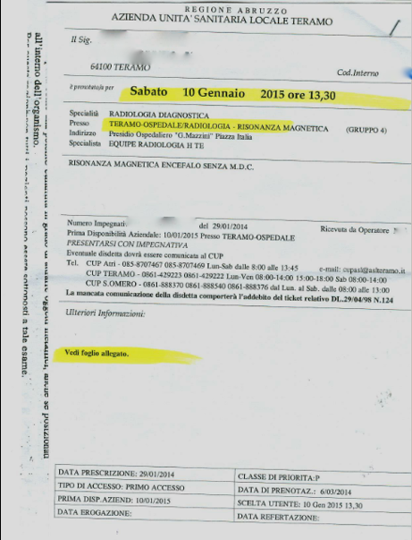 Ieri il mio amico ha avuto la risposta dalla sua Sanità per i suoi dubbi all'encefalo.