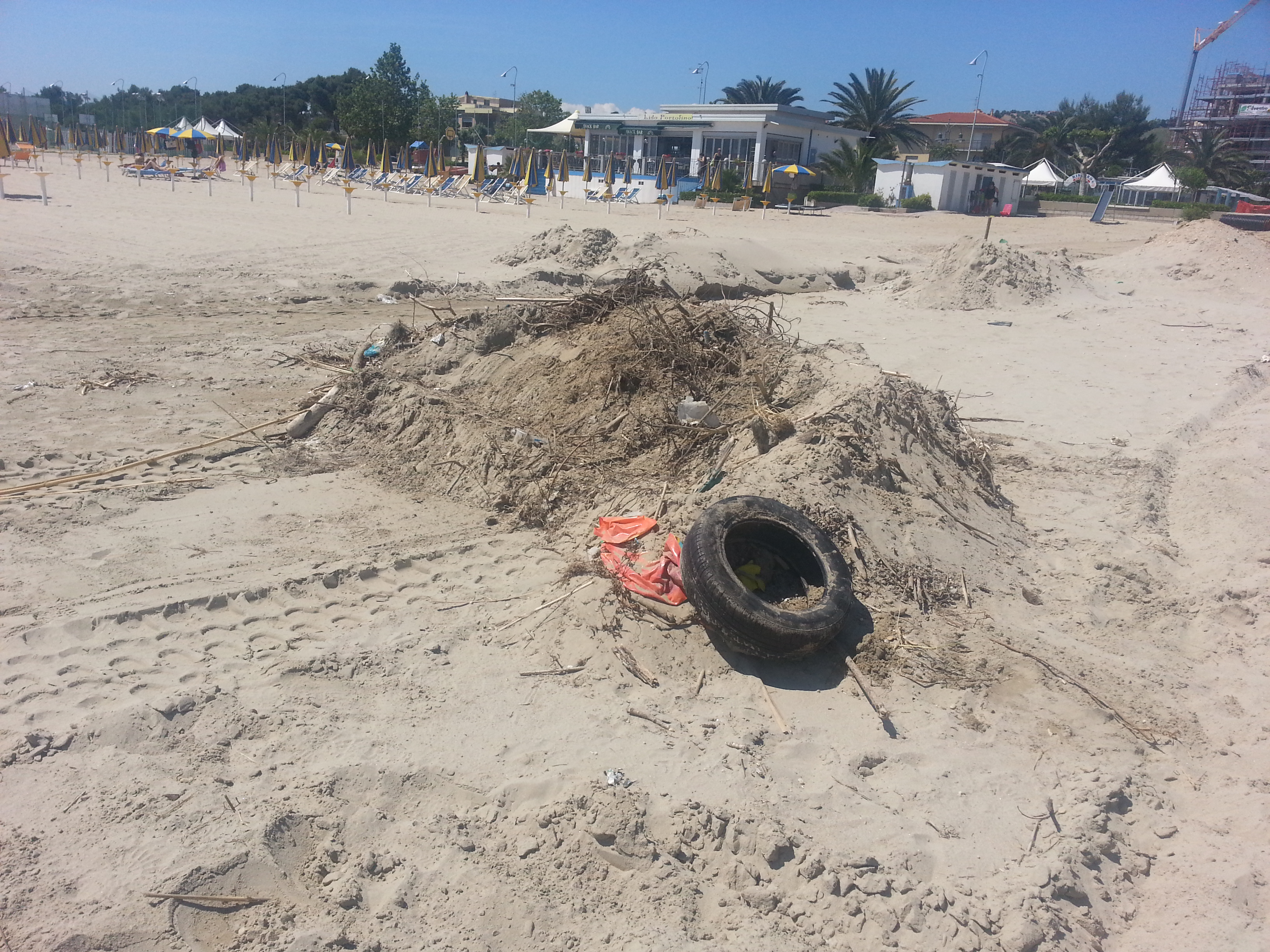 Cumuli di rifiuti che fanno brutta mostra, nel senso del femminile di mostro, durante la passeggiata sul bagno asciuga e che hanno alzato, una duna di protesta da parte dei turisti.